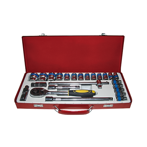 A staple in professional repair shops, this 24-Piece 1/2" Drive Reversible Ratchet Socket Set is forged from high-strength CRV (Chrome Vanadium Steel). It delivers exceptional torque resistance and comprehensive metric coverage to meet the most demanding fastening requirements.